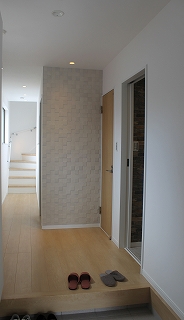 その他、玄関とリビングの壁にエコカラットを貼って、リビングには間接照明も設置して頂きました。