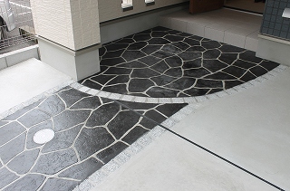 また本物の石やタイルを張る場合には下地工事が必要ですが、ケンクリートは特別な下地工事も不要なので施工日数も短縮できて、比較的コストを抑えて玄関廻りのデザインを作れます。